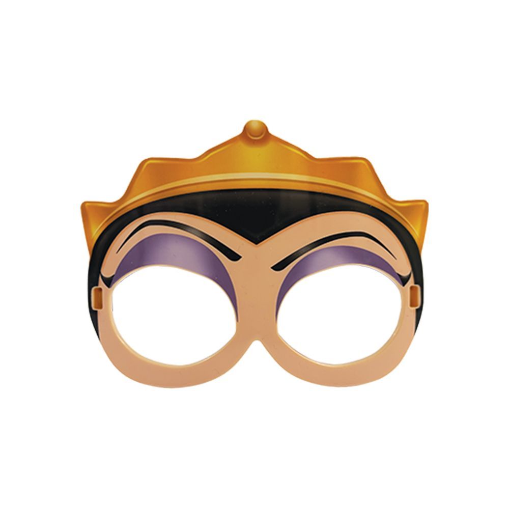 Cada máscara acompanha um cartão ilustrado com mais informações sobre o vilão. Estão disponíveis máscaras de: Malévola, Cruella De Vil, Rainha Má, Rainha de Copas, Hades e Dr. Facilier.