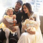 Neymar e Bruna Biancardi apresentaram a filhinha Mel, que nasceu neste sábado (5). O casal fez um ensaio de fotos com a pequena e a primogênita, Mavie. As fotos mostram momentos do parto, no quarto da maternidade e no momento que o jogador apresenta a bebê a parentes e amigos, no hospital